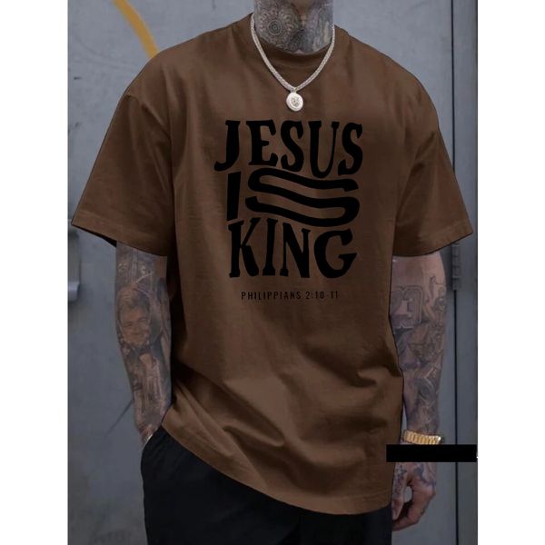 Camiseta Masculina Franshoes Casual 100% Algodão Jesus is King Marrom Manga Curta